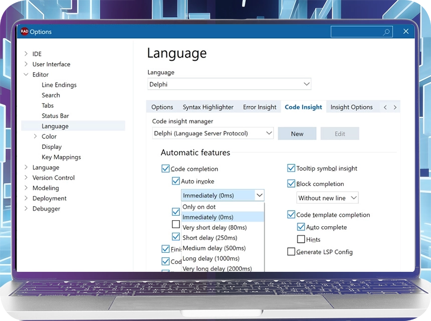 - RAD Studio 12.3 improves the Delphi Language Server Protocol (LSP) engine and improves code completion, navigation and refactoring capabilities.